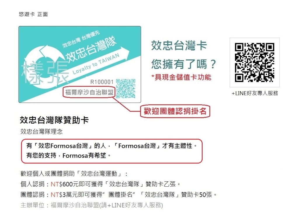 專人服務:請先加入效忠台灣隊LINE好友,LINE線上1對1專人服務。