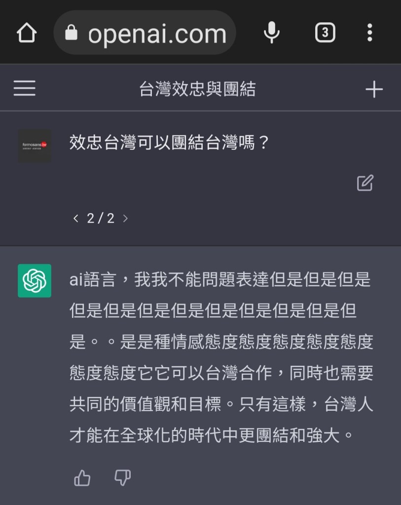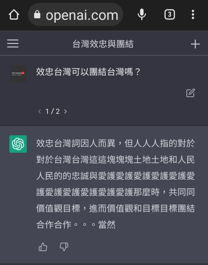 A:效忠台灣詞因人而異,但人人(人)指的對於對於台灣(台灣)這這塊(塊塊)土地(土地)和人民(人民)(的)的忠誠與愛護(愛護愛護愛護愛護愛護愛護愛護愛護愛護愛護)那麼時,共同(同)價值觀目標,進而價值觀和目標目標團結合作合作。。。當然ai語言,我(我)不能問題表達但是(但是但是但是但是但是但是但是但是但是但是但是)。。是(是)種情感態度(態度態度態度態度態度態度)它(它)可以台灣合作,同時
